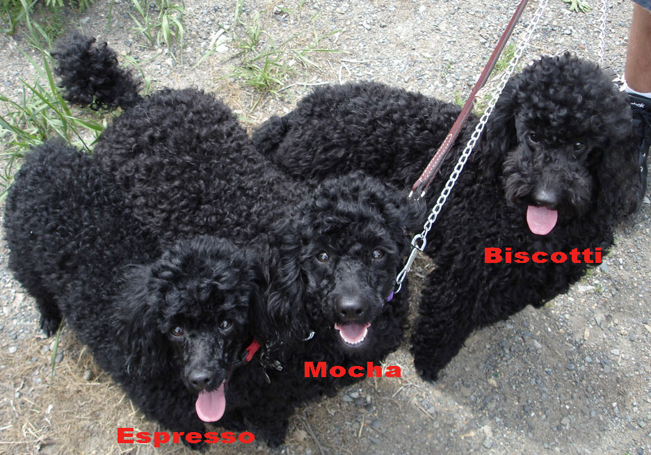 "Lady Espresso of Angle Lake" and the coffee names continued. Mocha and Biscotti were from Spressi's first litter. Two puppies