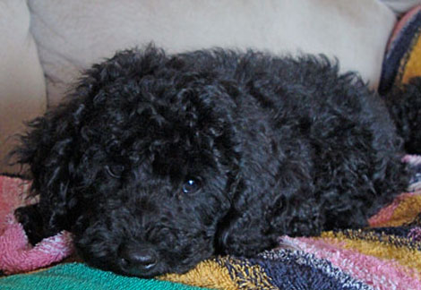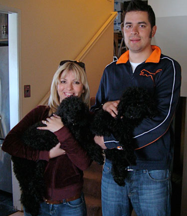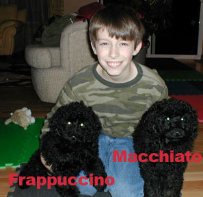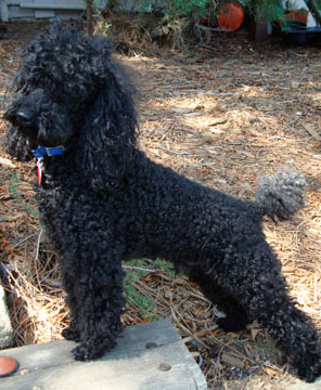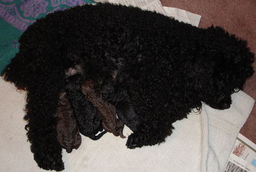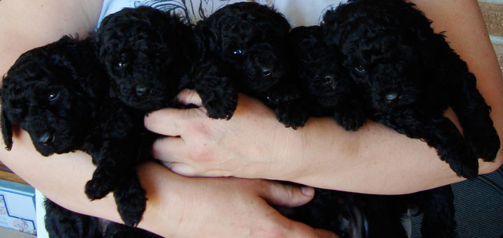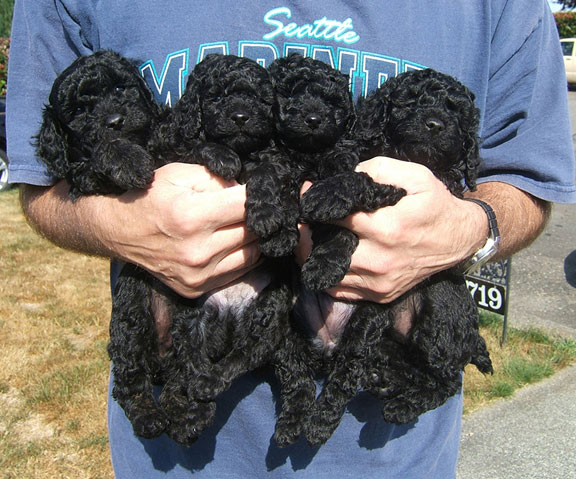 Spressi's last litter was on May 29, 2008 when she gave birth to five beautiful jet black babies (2 females and 3 males). One went to a couple who owns one of the puppies from Spressi's first litter and wanted a second. We kept the two females to continue this wonderful line of puppies. We believe Spressi has the best poodle puppies and wanted to continue her wonderful line. Now that Cina and Bella have been spayed and are retied, we are looking to our stud Chocolate Chip to keep the line going.