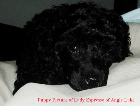 Lady Espresso of Angle Lake is the smartest and most beautiful female poodle we've ever seen with long eyelashes and